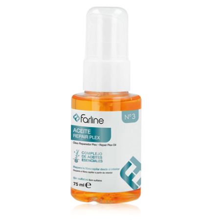 \r\nFarline Aceite Repair Plex 75 ml es un innovador producto diseñado para revitalizar y fortalecer el cabello dañado. Su fórmula avanzada penetra profundamente en las fibras capilares, restaurando la suavidad y el brillo natural de tu melena. Este aceite es ideal para aquellos que buscan reparar el daño causado por el calor, la coloración y otros factores ambientales. ¿Quieres lucir un cabello saludable y fuerte?\r\nSus beneficios