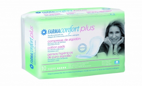 Las compresas para todo tipo de pérdidas Farmaconfort Plus están elaboradas con puro algodón hipoalergénico. Son suaves para la piel, muy absorbentes y cuentan con control del olor. Envasadas individualmente, han sido testadas dermatológicamente, ayudando a prevenir los riesgos de picores, irritaciones y alergias.